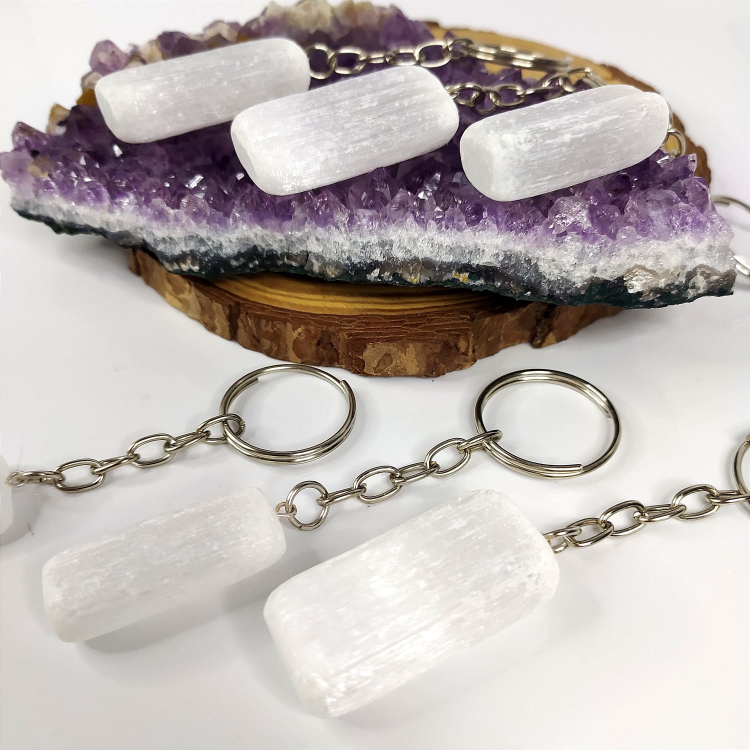 A Selenita é um cristal de contato espiritual. Facilita o contato com nossos guias espirituais, conecta-nos com os planos superiores, favorece a telepatia e nos protege nos sonhos.
